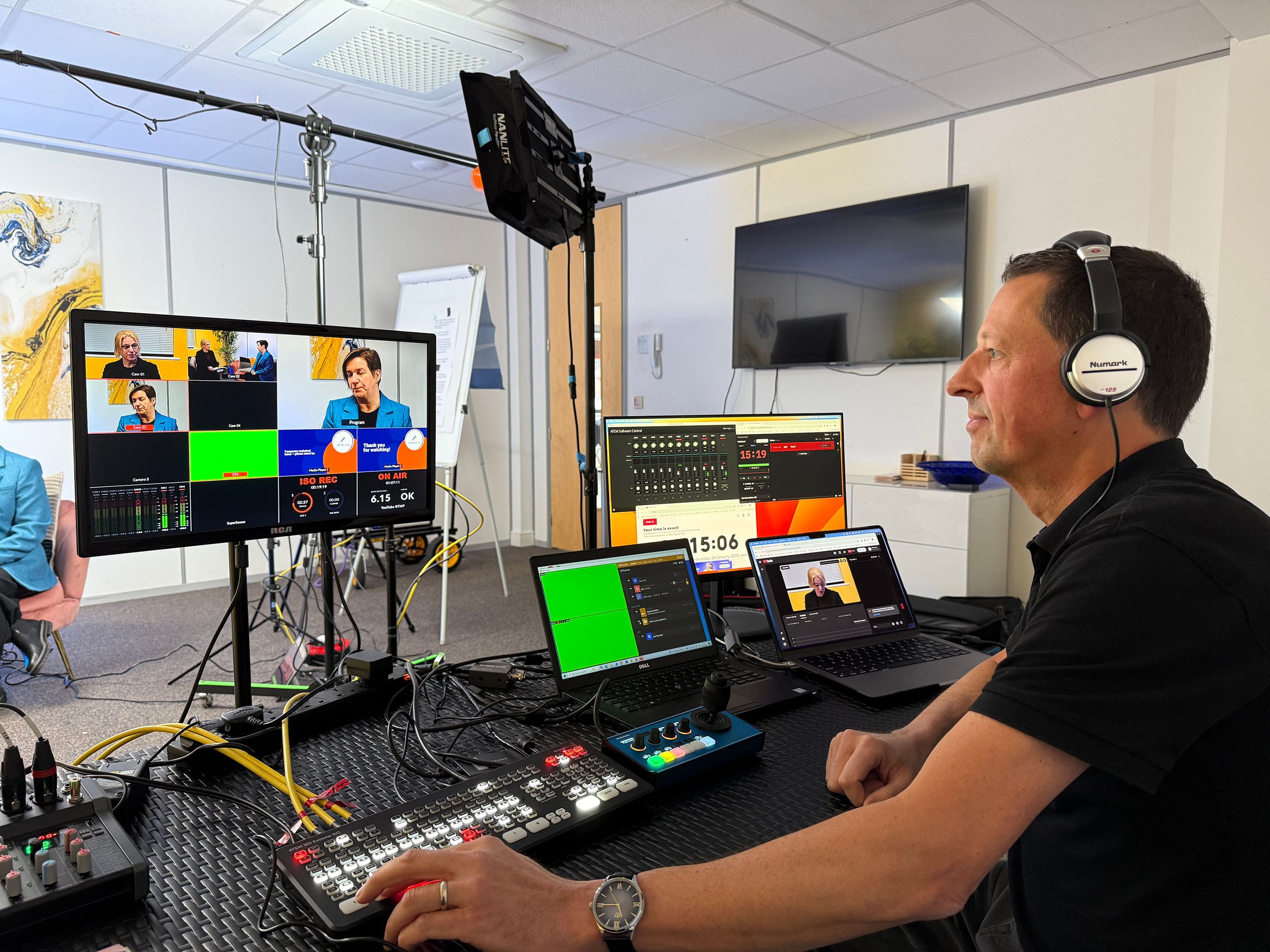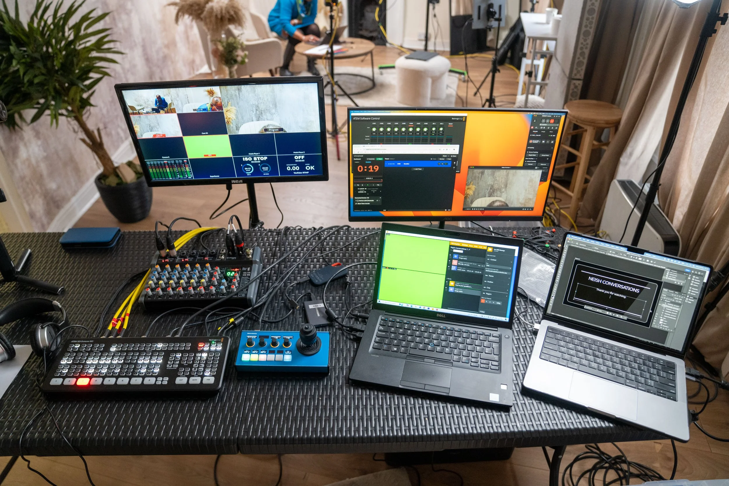 I handle the full connection from the production to the outside world, whether that’s a direct stream to YouTube, Vimeo, LinkedIn, or multiple platforms simultaneously using Restream.